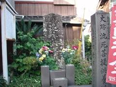 街道に戻って進むと左手に「流死菩提供養塔」が立っている。島原藩は雲仙普賢岳の大爆発とそれにともなう眉山の崩落による大津波で溺死者が多く打ち上げられた海辺ということで、三会、田町、南崩山、布津、須川、南有馬に同形、同碑文の供養塔を建立して供養をした。建立年月日は寛政5年(1793)2月28日・石材は良質の安山岩と説明されている。