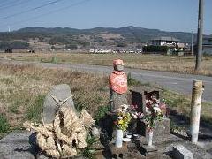 その先、右手に池があるところの手前で街道を離れて右折すると、286号線の先に「権現堂」と書かれた額がかかり、天明3年(1783)と刻まれた赤崎神社の鳥居が立っており、その横に地蔵堂があった。地元では子安観音と呼ばれているそうだ。
