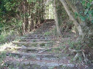 バス停に着くとすぐ前に「剣塚」へ向かう階段があり、これを登っていく。この道は元弘の乱(1331年)で後醍醐天皇が笠置に逃れた時に、柳生永珍が後醍醐天皇を助け、その糧道を守るために作ったといい、「殿さま街道」と呼ばれていたという。現在は剣塚から先の道は失われていると説明されている。急坂だが往復で10分ほどの距離であった。
