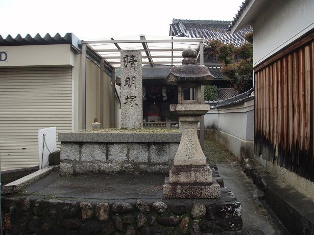 その先右手に「晴明塚」がある。ここは平安時代に活躍した陰陽師の安倍晴明が所蔵していた天文学の書物を埋めた場所と言われており、碑の前には明和4年(1767)の「五條天神宮」と刻まれた灯籠があり、背後には寛永11年(1634)の地蔵尊を安置する祠がある。