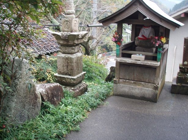 その先で371号線から右へ分岐して進むと、右手坂道を少し上ったところに「石仏寺」がある。この坂道が旧道で、石仏寺から天見川まで急な下りになっていて、鳥居坂を呼ばれ、高野街道の難所の一つだったと資料に書かれている。現在は石仏寺のところで道はなくなっている。