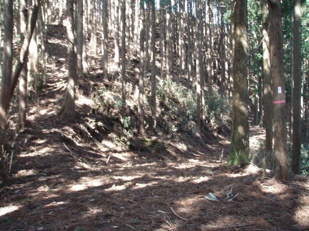 道は完全な山道で、緩やかな登り道になっていて、コウヤマキの中を進んでいく。