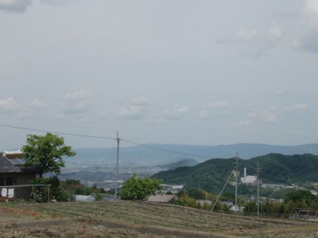 高天原神社まで2kmの標識が立っており、ここから右手は眺望が開けて奈良盆地の景色が広がっている。このように随所に標識が立っていて、非常に助かる。