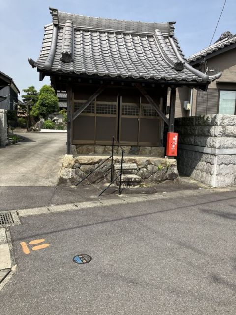 駒場町の信号を右折、その先で左折したところに地藏堂があり、ここを右折したところにも地藏堂(写真)があるので、ここを右折、その先を左折すると右手に八幡宮がある。広田川に架かる駒場橋を渡り、突き当りを左折したところ左手に安政と読める常夜燈が立っている。この辺りの道はかなり左折、右折を繰り返して進む。