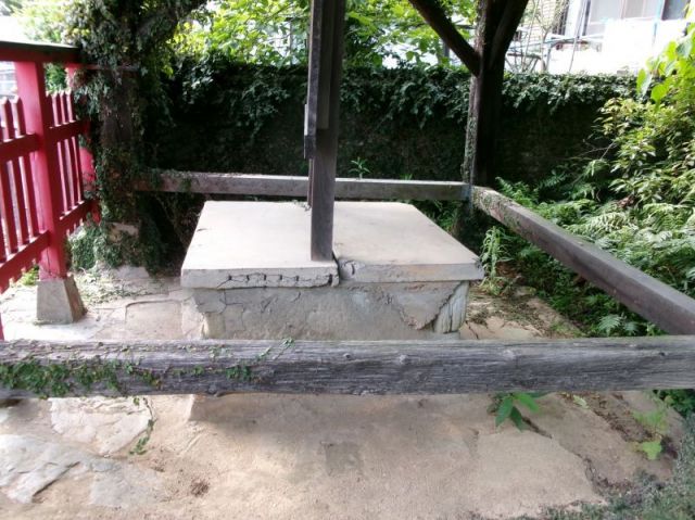 階段の幅も狭くて歩きにくかったが、とにかく「一期一会」を唱えて全員が登って行った。ところがフーフー言いながら登り着いたところには小さな、比較的新しい祠が一つポツンとあるだけだった。周囲の状況から以前はそれなりに歴史のある神社だったのかもしれないが、今はこれだけ?という感じの場所だった。でもまぁこれも「一期一会」のなせる業かと納得する。祠の後ろには途中で見たものと同じ造りの物が二つあった。何なのだろう?